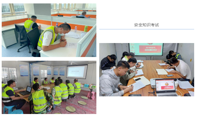 各项目结合项目施工管理实际,通过观看安全月专题教育片、安全事故案例视频、安全管理经验分享等形式实施安全教育专项培训,并组织全员参与安全知识考试,扩大安全教育的辐射面,增强项目全体成员对安全生产重要性的理解和认知。